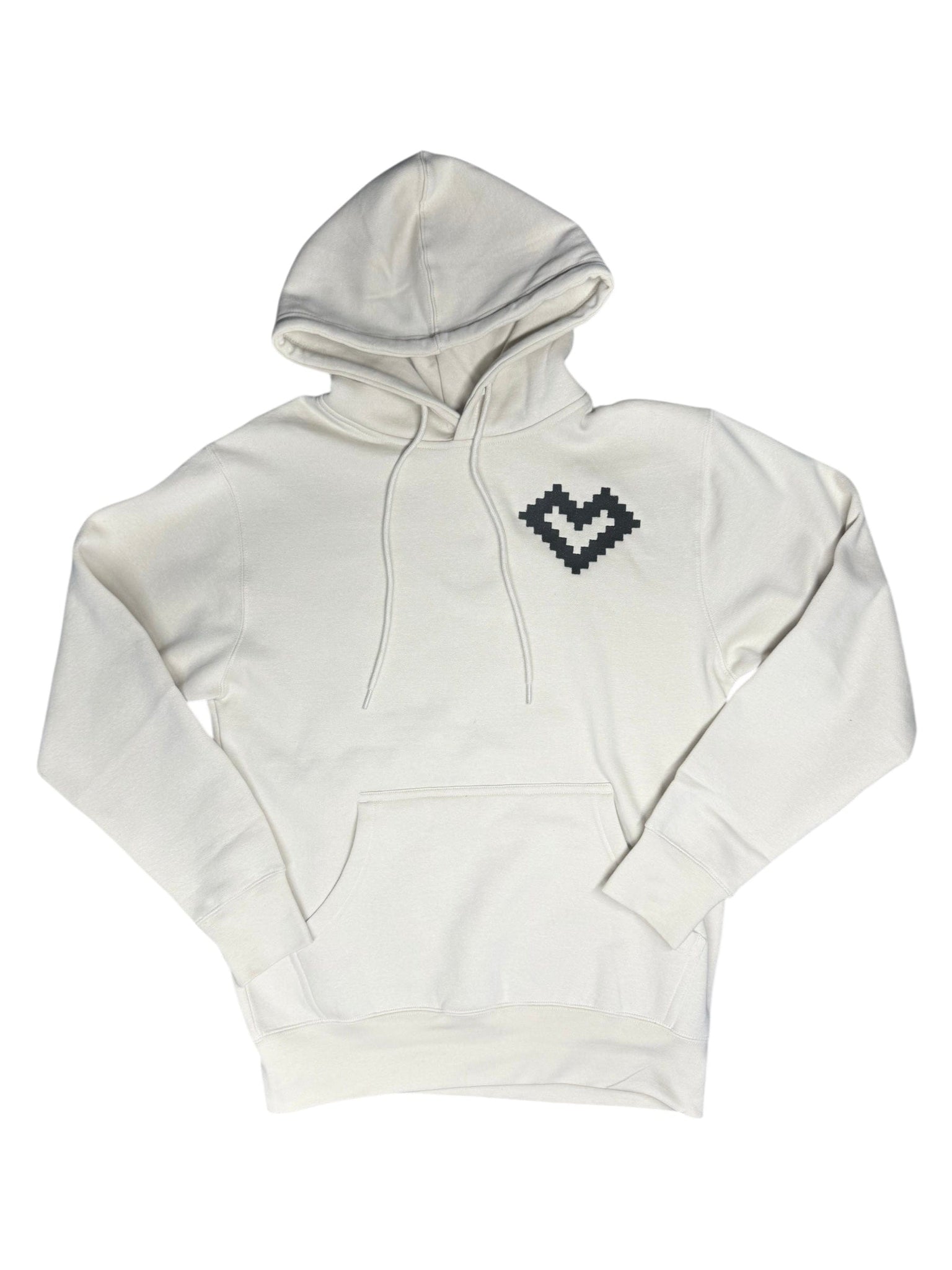 Meet your new favorite everyday essential. This off-white/cream hoodie features a bold, embroidered, black, "Chiefs Heart" design on the left chest, blending Cherokee basket vibes with modern, high-end comfort.